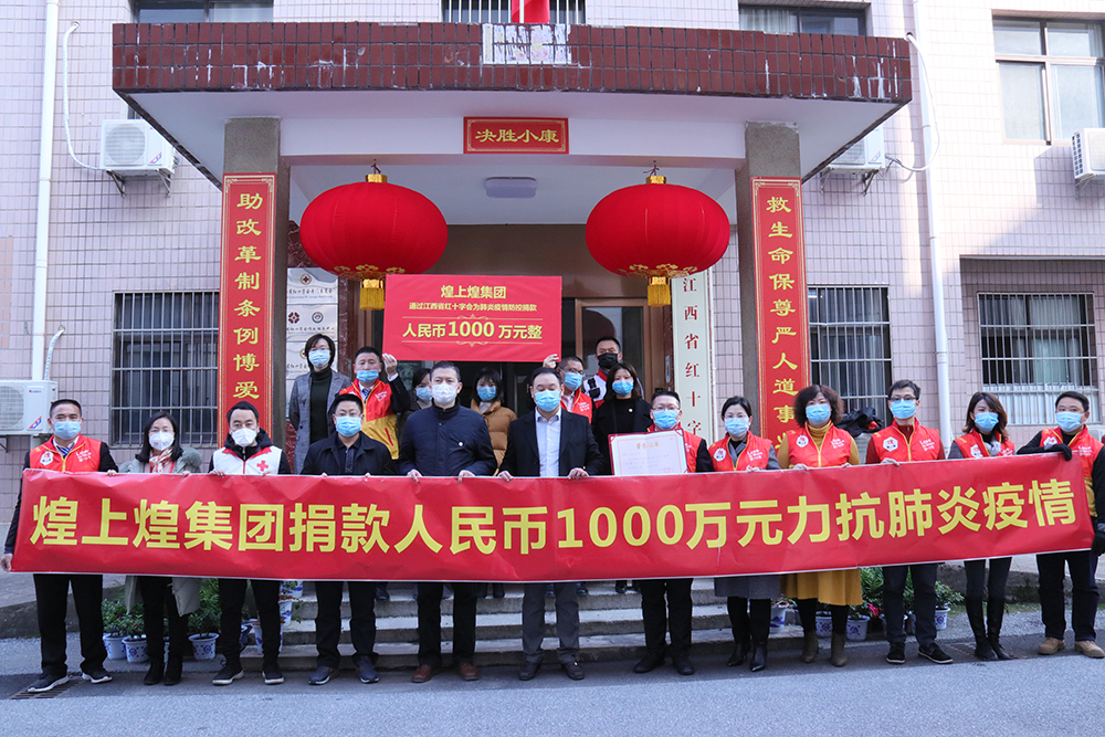 當天上午,煌上煌集團捐款人民幣1000萬力抗肺炎疫情捐贈儀式在江西省紅十字會舉行。集團黨委副書記、股份公司副董事長兼副總經理褚劍代表公司向省紅十字會黨組書記、常務副會長周海濤遞捐贈牌,省紅十字會向煌上煌集團頒發捐款證書,據了解,這是目前為止我省接到的最大一筆捐款,將全部專項用于購置醫用防護服、醫用外科口罩、一次性手術服、防護臉罩、護目鏡等急需醫療物資、醫療器具及醫療設施建設。
