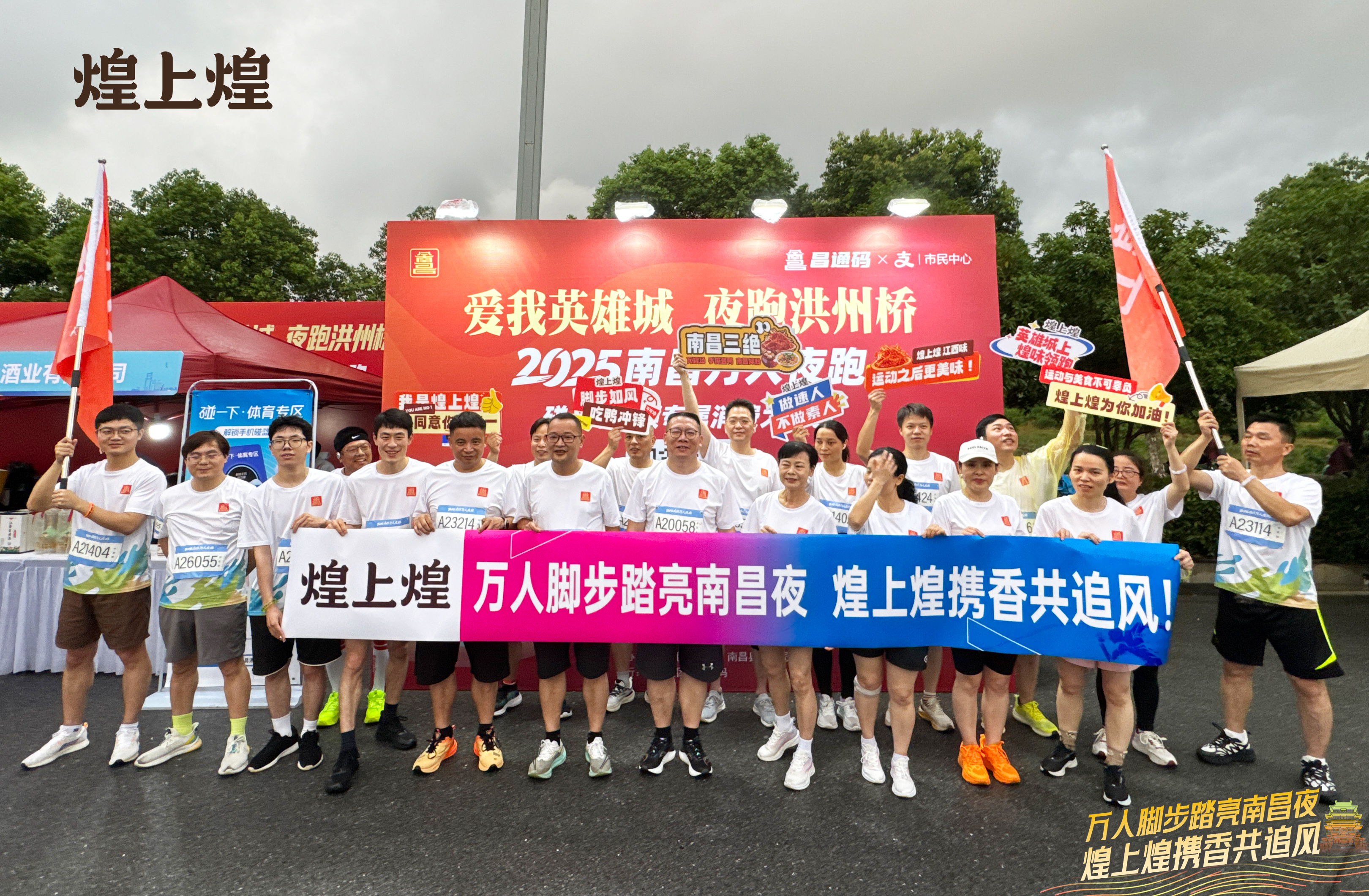 不僅如此,煌上煌還組織了30余人的“煌”家跑團,積極參加到本夜跑當中。他們手舉煌上煌旗幟,步伐矯健、精神抖擻地在賽道馳騁,吸引了眾多參賽者和觀賽者的注目,展現了煌上煌優秀的品牌形象,成為賽道上一道獨特的風景線。