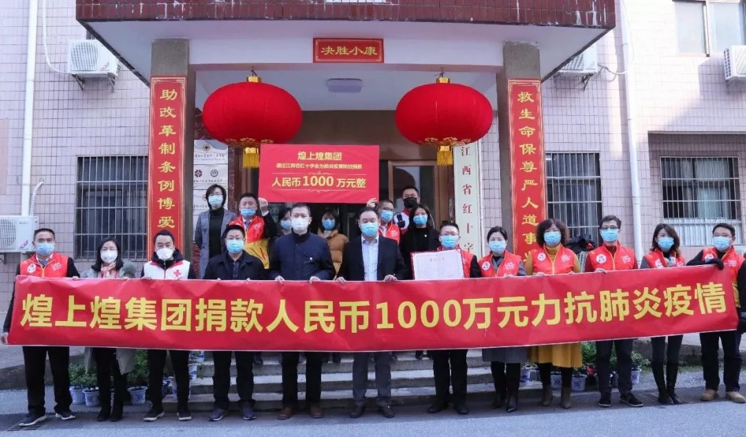 在疫情特殊時期,煌上煌堅決貫徹落實省、市、縣區的決策部署,第一時間成立疫情防控領導小組,嚴格落實防控責任,肩負企業擔當,做到一方有難八方支援,率先通過江西省紅十字會捐款人民幣1000萬元;組織分批向援鄂醫療隊捐贈產品物資;聯通集團子公司攜手愛心大派發;全國門店不打烊馳援各地保障食品供應;緊急啟動家禽屠宰生產線,解決家禽養殖戶壓欄賣難和市民家禽消費買難問題;組織員工無償獻血……全力支持抗擊肺炎疫情防控工作。