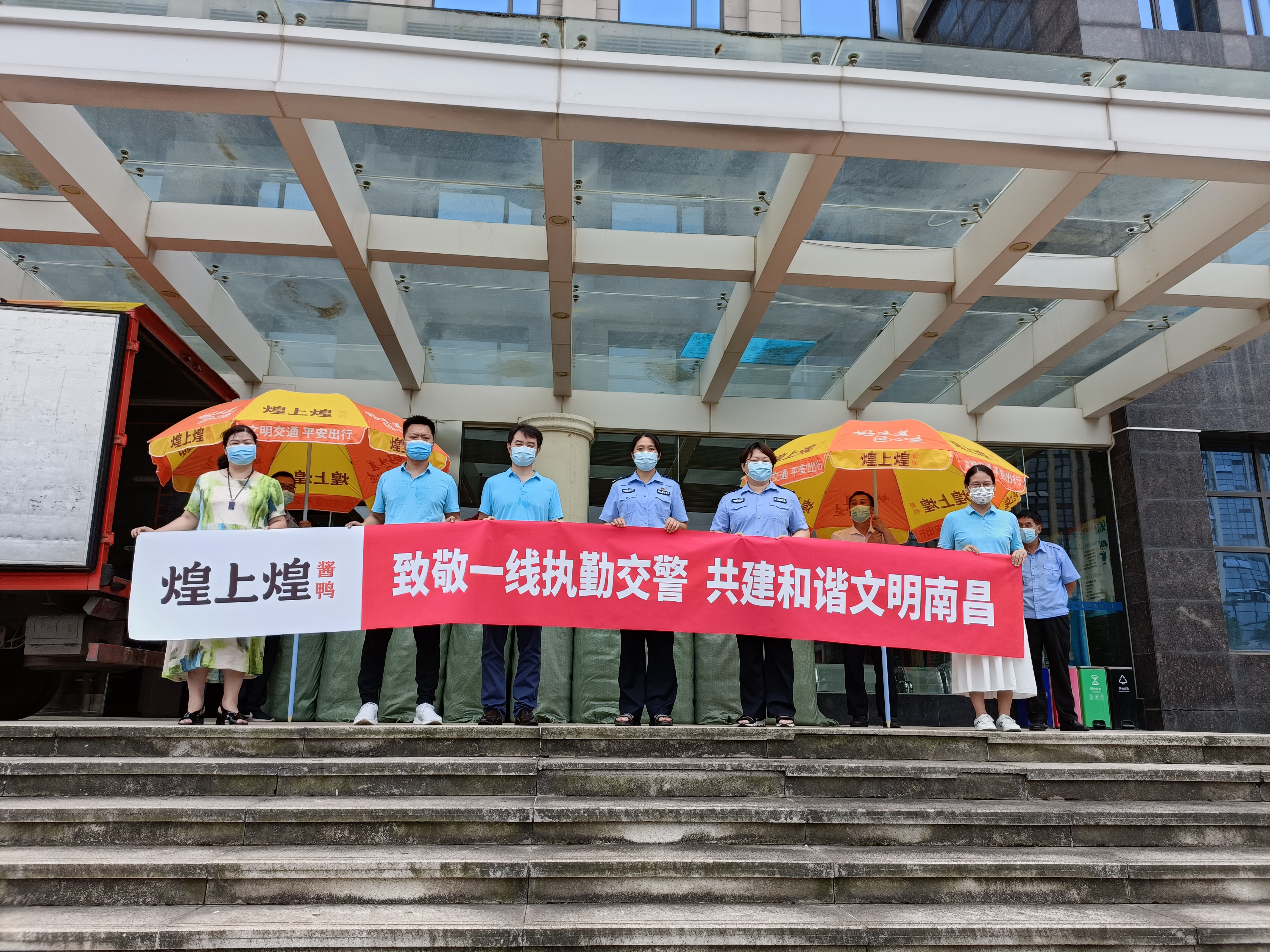 煌上煌暖心捐贈(zèng)遮陽(yáng)傘,為一線交警送清涼